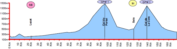 Col du Portel (1465 m-1a cat.) km 96.6, Col de la Core (1395 m-1a cat.) km 138.7